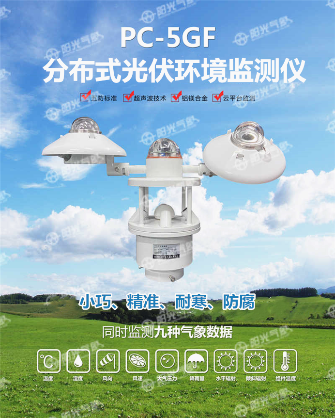 PC-5GF分布式光伏環(huán)境監(jiān)測(cè)儀是錦州陽(yáng)光氣象科技有限公司自主研發(fā)的一款便于安裝、測(cè)量精度高、性能穩(wěn)定,并集成多項(xiàng)氣象要素為一體的具有金屬防爆外殼的環(huán)境監(jiān)測(cè)儀。本產(chǎn)品根據(jù)太陽(yáng)能資源評(píng)估、太陽(yáng)能系統(tǒng)監(jiān)測(cè)需要,并結(jié)合太陽(yáng)能觀測(cè)系統(tǒng)的技術(shù)研制而成的。
